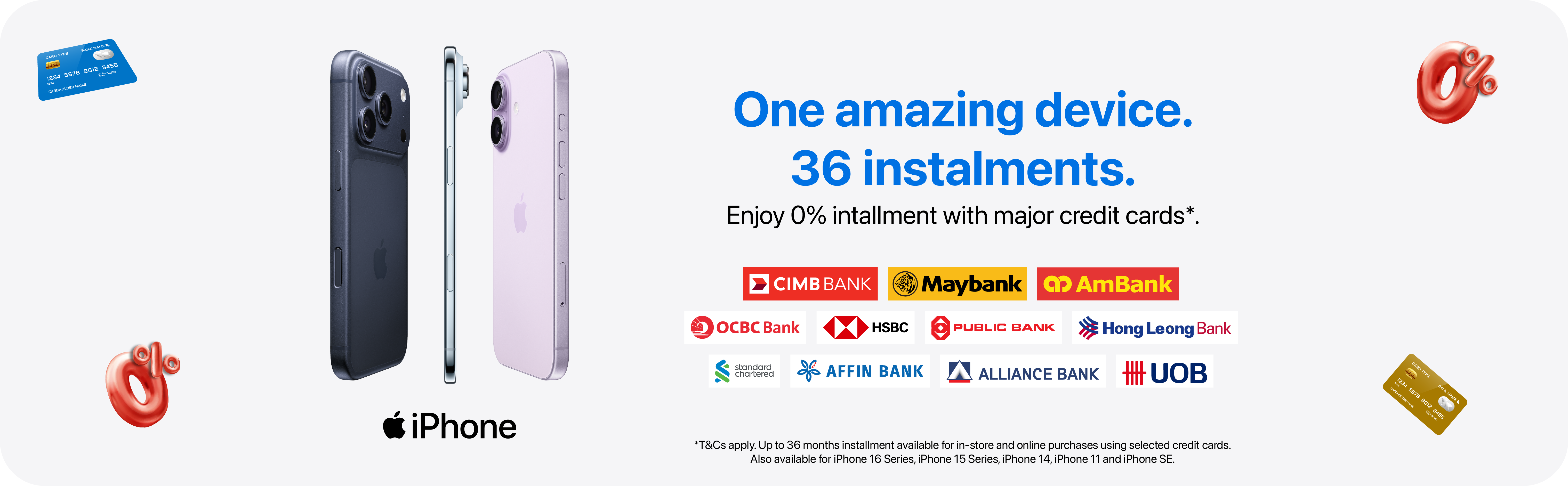 Purchase any iPhone, iPad, Mac or Apple Watch with Ambank, 0% instalment and enjoy complimentary up to RM100 voucher*
