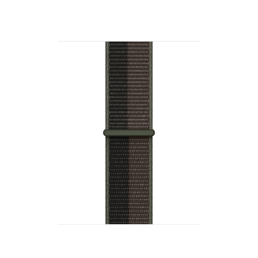 Soft, breathable and lightweight, the Sport Loop features a hook-and-loop fastener for quick and easy adjustment. The double-layer nylon weave has dense loops on the skin side that provide soft cushioning while allowing moisture to escape. This weave is made with 82% recycled yarn, some of which contains material from discarded fishing nets. This strap is carbon neutral. The Sport Loop contains 45% recycled content by weight, 100% of manufacturing electricity is covered by clean energy, and 50% or more of all carbon-neutral Apple Watch products are shipped without aeroplanes.