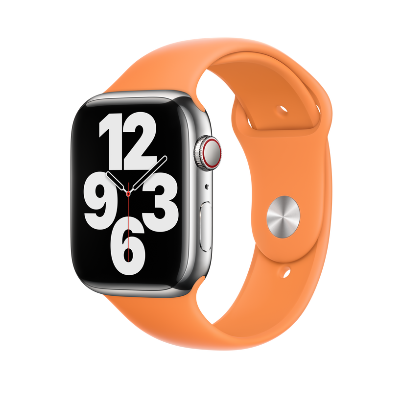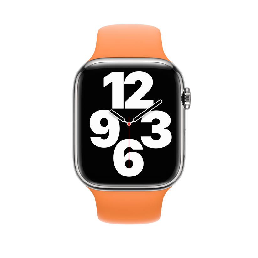 Made from a custom high-performance fluoroelastomer, the Sport Band is durable and strong, yet surprisingly soft. The smooth, dense material drapes elegantly across your wrist and feels comfortable next to your skin. An innovative pin-and-tuck closure ensures a clean fit.