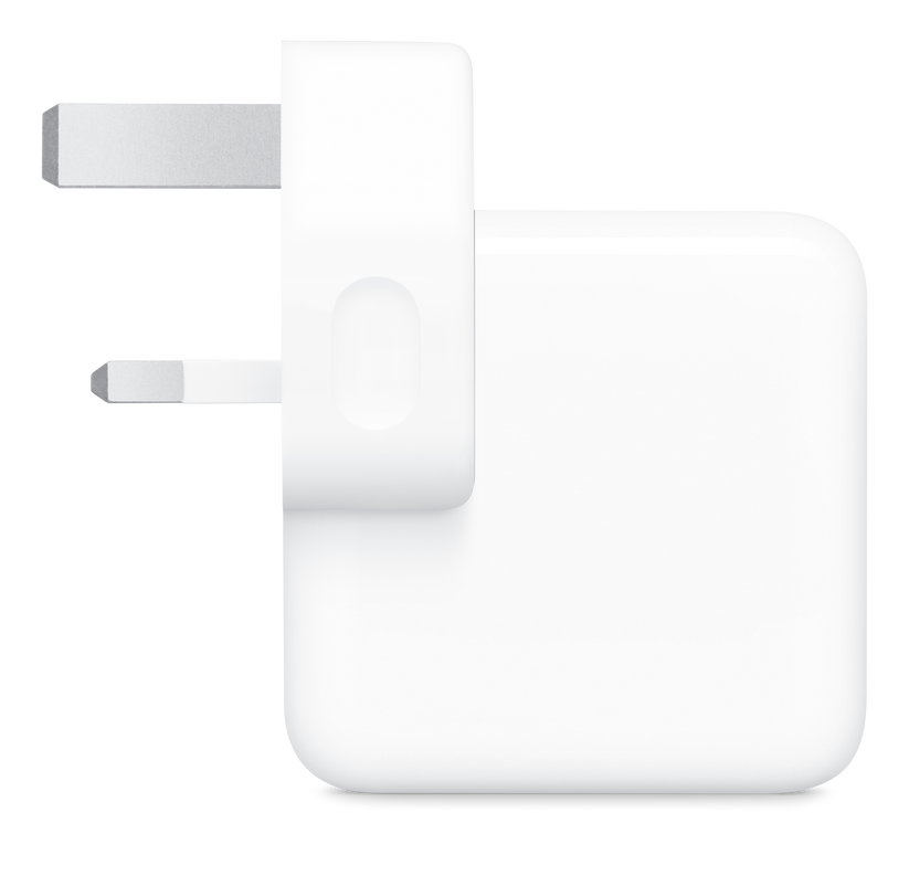 The 35W Dual USB‑C Port Power Adapter allows you to charge two devices at the same time, whether you’re at home, in the office or on the go. Apple recommends using it with MacBook Air. You can also use it with iPhone, iPad, Apple Watch and AirPods.