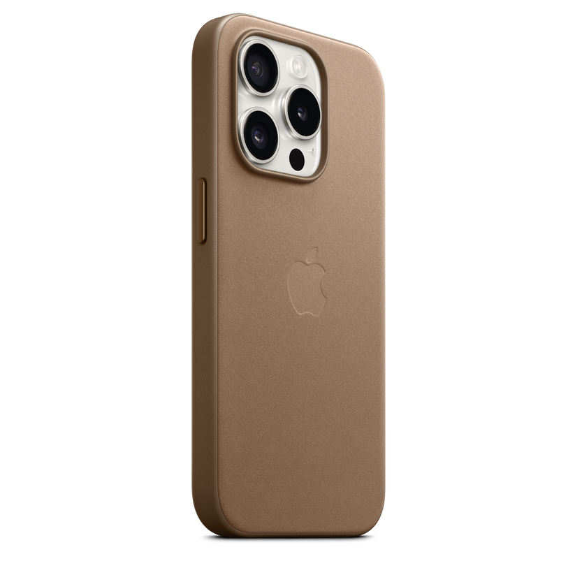 Designed by Apple to complement iPhone 15 Pro, the FineWoven Case with MagSafe is a delightful way to give your iPhone extra protection while adding style. Made from durable micro-twill, the material has a soft, suede-like feel. The FineWoven material was also designed with the earth in mind — made from 68 per cent post-consumer recycled content and significantly reducing carbon emissions compared with leather. The case quickly snaps into place and fits snugly over your iPhone without adding bulk. With built-in magnets that align perfectly with iPhone 15 Pro, this case offers a magical attach experience and faster wireless charging, every time. When it’s time to charge, just leave the case on your iPhone and snap on your MagSafe charger, or set it on your Qi-certified charger. Like every Apple-designed case, it undergoes thousands of hours of testing throughout the design and manufacturing process. So not only does it look great, it’s built to protect your iPhone from scratches and drops. This high-quality case is made to be durable and protect your iPhone. The FineWoven material may show wear over time. Interaction with MagSafe accessories will leave slight imprints. If you are concerned about this, we suggest you use an iPhone 15 Pro Silicone Case or Clear Case.