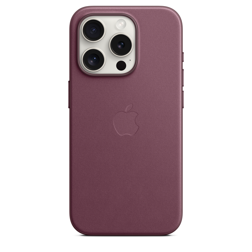 Designed by Apple to complement iPhone 15 Pro, the FineWoven Case with MagSafe is a delightful way to give your iPhone extra protection while adding style. Made from durable micro-twill, the material has a soft, suede-like feel. The FineWoven material was also designed with the earth in mind — made from 68 per cent post-consumer recycled content and significantly reducing carbon emissions compared with leather. The case quickly snaps into place and fits snugly over your iPhone without adding bulk. With built-in magnets that align perfectly with iPhone 15 Pro, this case offers a magical attach experience and faster wireless charging, every time. When it’s time to charge, just leave the case on your iPhone and snap on your MagSafe charger, or set it on your Qi-certified charger. Like every Apple-designed case, it undergoes thousands of hours of testing throughout the design and manufacturing process. So not only does it look great, it’s built to protect your iPhone from scratches and drops. This high-quality case is made to be durable and protect your iPhone. The FineWoven material may show wear over time. Interaction with MagSafe accessories will leave slight imprints. If you are concerned about this, we suggest you use an iPhone 15 Pro Silicone Case or Clear Case.