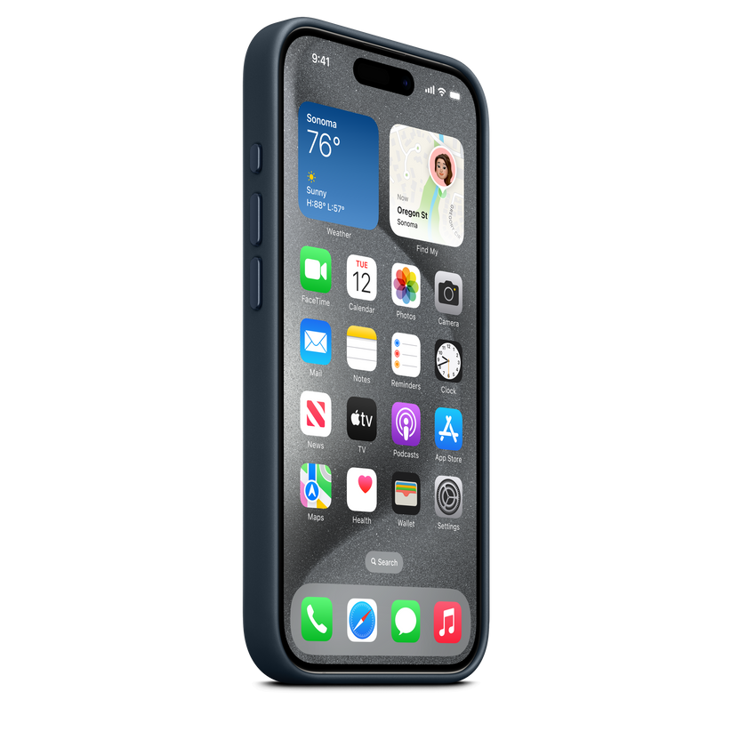 Designed by Apple to complement iPhone 15 Pro, the FineWoven Case with MagSafe is a delightful way to give your iPhone extra protection while adding style. Made from durable micro-twill, the material has a soft, suede-like feel. The FineWoven material was also designed with the earth in mind — made from 68 per cent post-consumer recycled content and significantly reducing carbon emissions compared with leather. The case quickly snaps into place and fits snugly over your iPhone without adding bulk. With built-in magnets that align perfectly with iPhone 15 Pro, this case offers a magical attach experience and faster wireless charging, every time. When it’s time to charge, just leave the case on your iPhone and snap on your MagSafe charger, or set it on your Qi-certified charger. Like every Apple-designed case, it undergoes thousands of hours of testing throughout the design and manufacturing process. So not only does it look great, it’s built to protect your iPhone from scratches and drops. This high-quality case is made to be durable and protect your iPhone. The FineWoven material may show wear over time. Interaction with MagSafe accessories will leave slight imprints. If you are concerned about this, we suggest you use an iPhone 15 Pro Silicone Case or Clear Case.